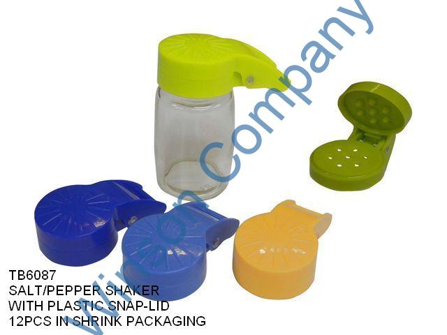 TB6087 12 pcs salt/pepper shaker with plastic snap-lid in shrink packaging GL&P