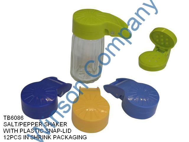 TB6086 12 pcs salt/pepper shaker with plastic snap-lid in shrink packaging GL&P