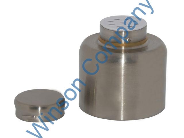 SN0022 (view 1) ← Previous Next → SN0022 Spice bottle 7.2 cm dia 7.47cm in height thickness: 0.7mm 18/8 stainless steel