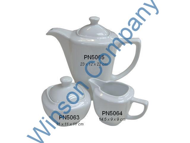 PN5063 64 65 ← Previous Next → PN5063 Square sugar pot 4.25″ 11*11*11 cm PN PN5064 Square milk pot 5.7″ 14.5*9*9 cm PN PN5065 Square tea pot 1200cc & lid 23*12*22cm PN