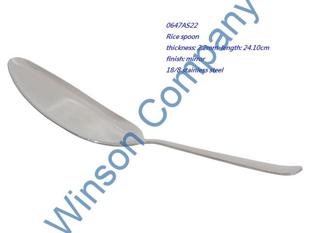 0647AS22-Rice spoon ← Previous Next → 0647AS22 Rice spoon thickness: 2.2mm length: 24.10cm finish: mirror Rice spoon thickness: 2.2mm length: 24.10cm finish: mirror 18/8 stainless steel