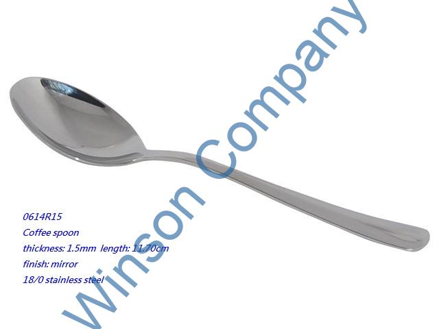 0614R15-Coffee spoon ← Previous Next → 0614R15 Coffee spoon thickness: 1.5mm length: 11.70cm finish: mirror Coffee spoon thickness: 1.5mm length: 11.70cm finish: mirror 18/0 stainless steel
