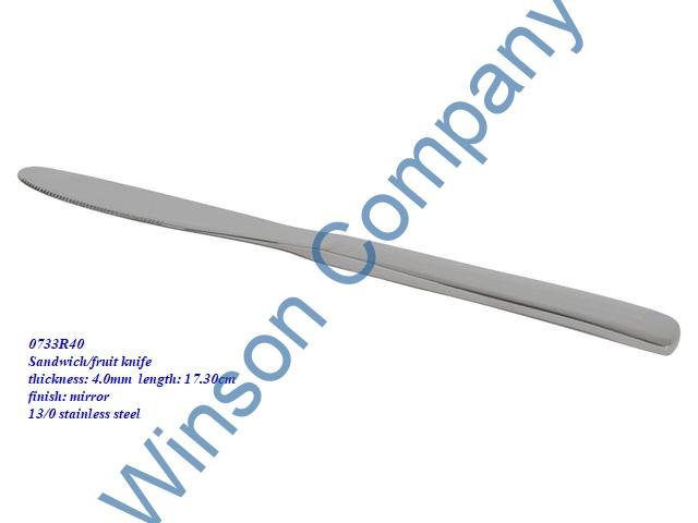 0733R40-Sandwich,fruit knife ← Previous Next → 0733R40 Sandwich/fruit knife thickness: 4.0mm length: 17.30cm finish: mirror Sandwich/fruit knife thickness: 4.0mm length: 17.30cm finish: mirror 13/0 stainless steel