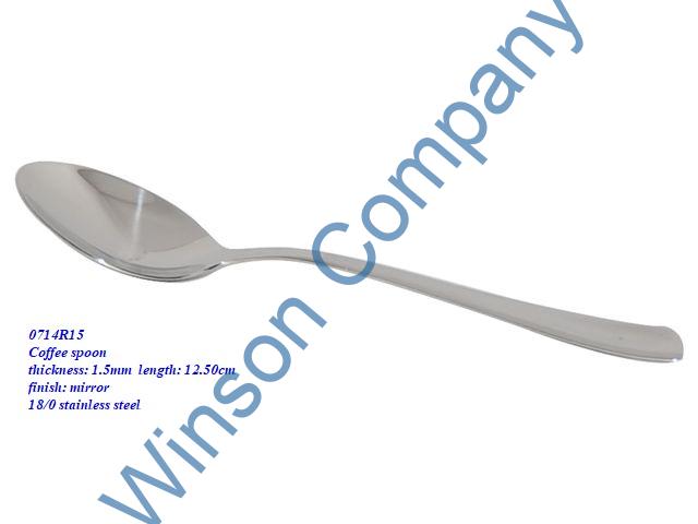 0714R15 Coffee spoon thickness: 1.5mm length: 12.50cm finish: mirror Coffee spoon thickness: 1.5mm length: 12.50cm finish: mirror 18/0 stainless steel