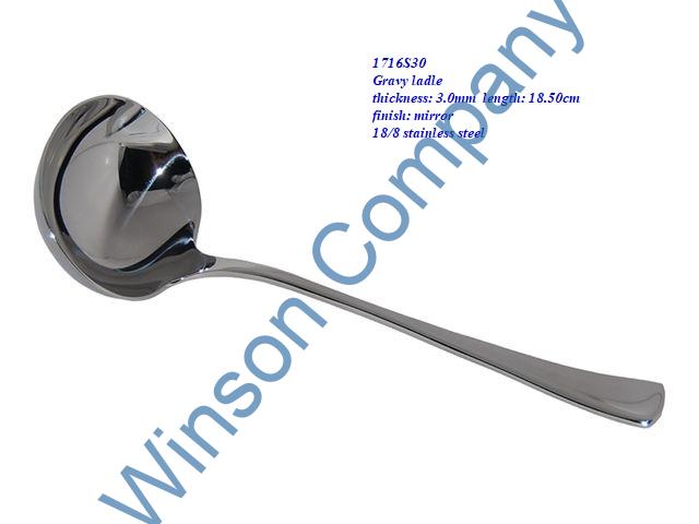 1716S30-Gravy ladle ← Previous Next → 1716S30 Gravy ladle thickness: 3.0mm length: 18.50cm finish: mirror Gravy ladle thickness: 3.0mm length: 18.50cm finish: mirror 18/8 stainless steel