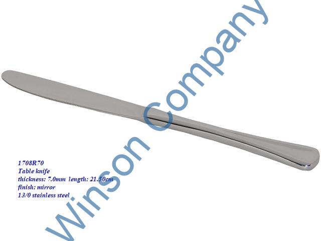 1708R70-Table knife ← Previous Next → 1708R70 Table knife thickness: 7.0mm length: 21.50cm finish: mirror Table knife thickness: 7.0mm length: 21.50cm finish: mirror 13/0 stainless steel