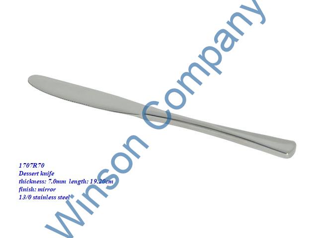 1707R70-Dessert knife ← Previous Next → 1707R70 Dessert knife thickness: 7.0mm length: 19.20cm finish: mirror Dessert knife thickness: 7.0mm length: 19.20cm finish: mirror 13/0 stainless steel