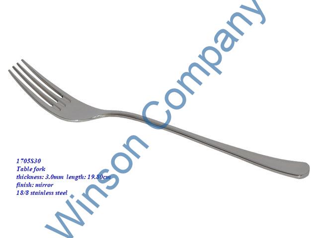 1705S30-Table fork ← Previous 1705S30 Table fork thickness: 3.0mm length: 19.80cm finish: mirror Table fork thickness: 3.0mm length: 19.80cm finish: mirror 18/8 stainless steel