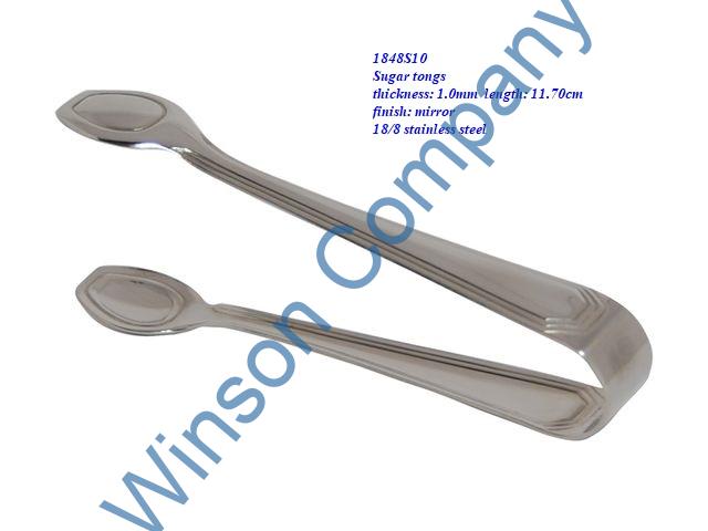 1848S10-Sugar tongs ← Previous Next → 1848S10 Sugar tongs thickness: 1.0mm length: 11.70cm finish: mirror Sugar tongs thickness: 1.0mm length: 11.70cm finish: mirror 18/8 stainless steel