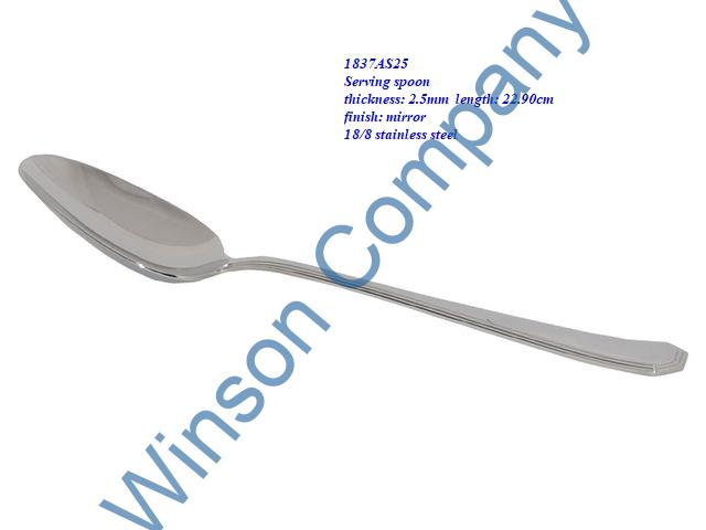 1837AS25-Serving spoon ← Previous Next → 1837AS25 Serving spoon thickness: 2.5mm length: 22.90cm finish: mirror Serving spoon thickness: 2.5mm length: 22.90cm finish: mirror 18/8 stainless steel