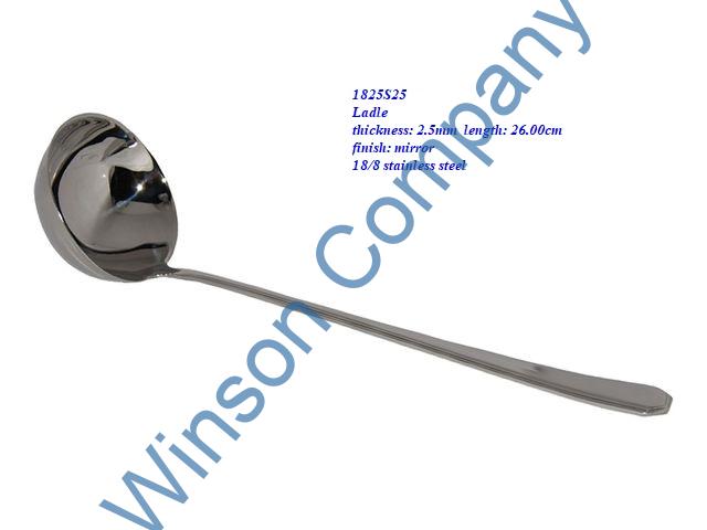 1825S25-Ladle ← Previous Next → 1825S25 Ladle thickness: 2.5mm length: 26.00cm finish: mirror Ladle thickness: 2.5mm length: 26.00cm finish: mirror 18/8 stainless steel