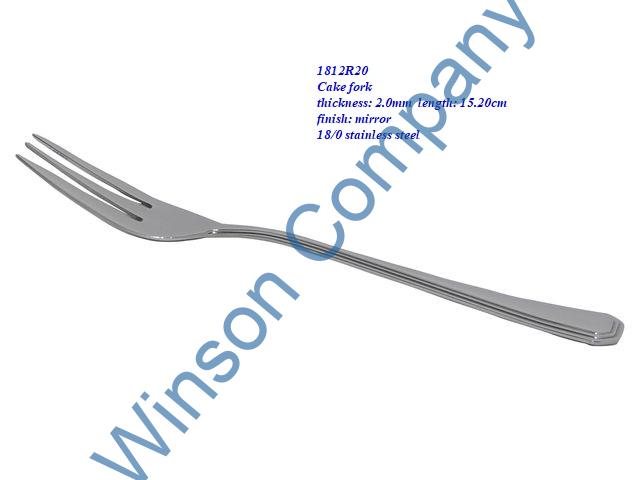 1812R20 Cake fork thickness: 2.0mm length: 15.20cm finish: mirror Cake fork thickness: 2.0mm length: 15.20cm finish: mirror 18/0 stainless steel