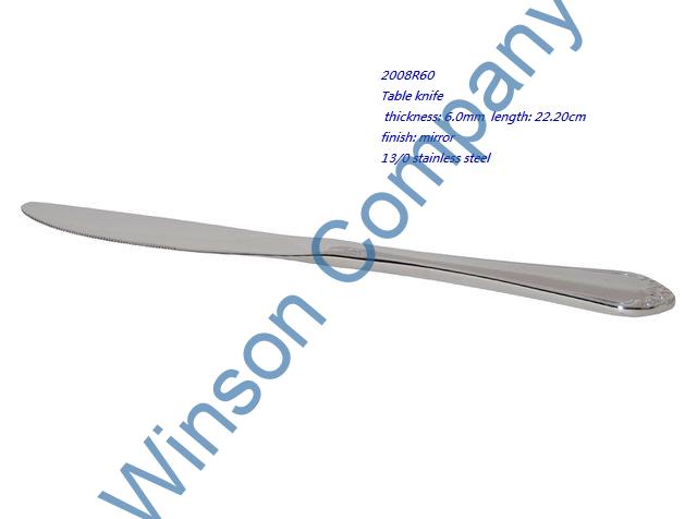 2008R60-Table knife ← Previous Next → 2008R60 Table knife thickness: 6.0mm length: 22.20cm finish: mirror Table knife thickness: 6.0mm length: 22.20cm finish: mirror 13/0 stainless steel