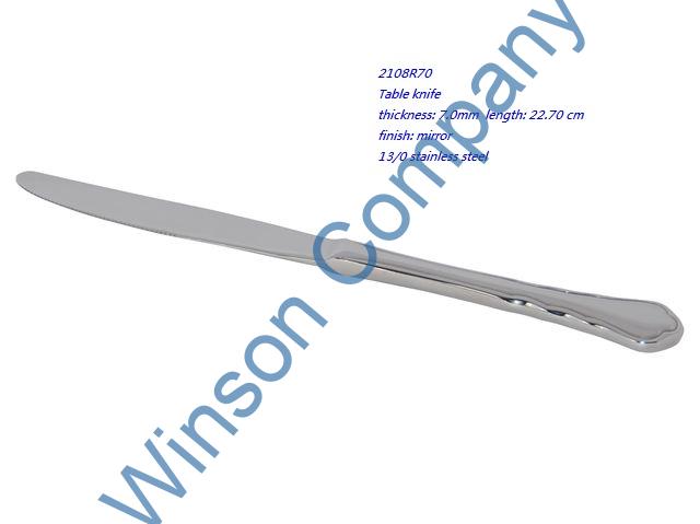 2108R70-Table knife ← Previous Next → 2108R70 Table knife thickness: 7.0mm length: 22.70 cm finish: mirror Table knife thickness: 7.0mm length: 22.70 cm finish: mirror 13/0 stainless steel