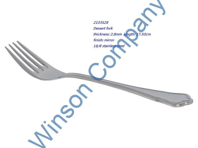 2103S28-Dessert fork ← Previous Next → 2103S28 Dessert fork thickness: 2.8mm length: 17.50cm finish: mirror Dessert fork thickness: 2.8mm length: 17.50cm finish: mirror 18/8 stainless steel