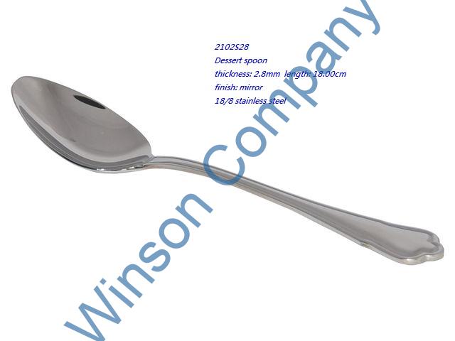 2102S28 Dessert spoon thickness: 2.8mm length: 18.00cm finish: mirror Dessert spoon thickness: 2.8mm length: 18.00cm finish: mirror 18/8 stainless steel