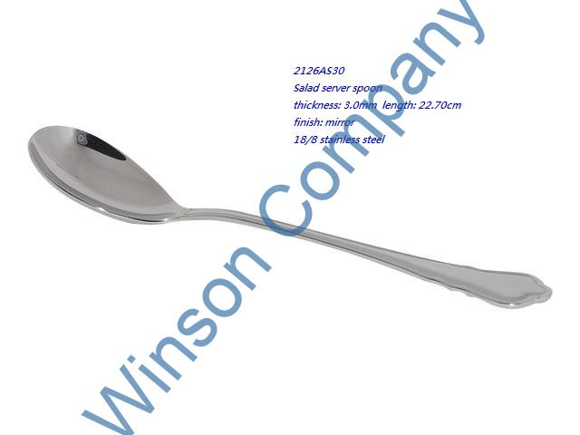 2126AS30-Salad server spoon ← Previous Next → 2126AS30 Salad server spoon thickness: 3.0mm length: 22.70cm finish: mirror Salad server spoon thickness: 3.0mm length: 22.70cm finish: mirror 18/8 stainless steel