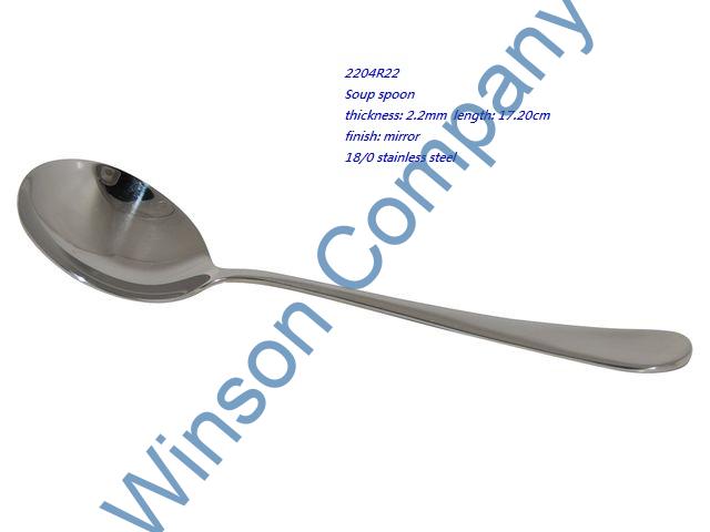 2204R22 Soup spoon thickness: 2.2mm length: 17.20cm finish: mirror 18/0 stainless steel