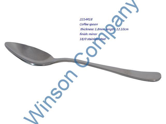 2214R18-Coffee spoon ← Previous Next → 2214R18 Coffee spoon thickness: 1.8mm length: 12.10cm finish: mirror 18/0 stainless steel