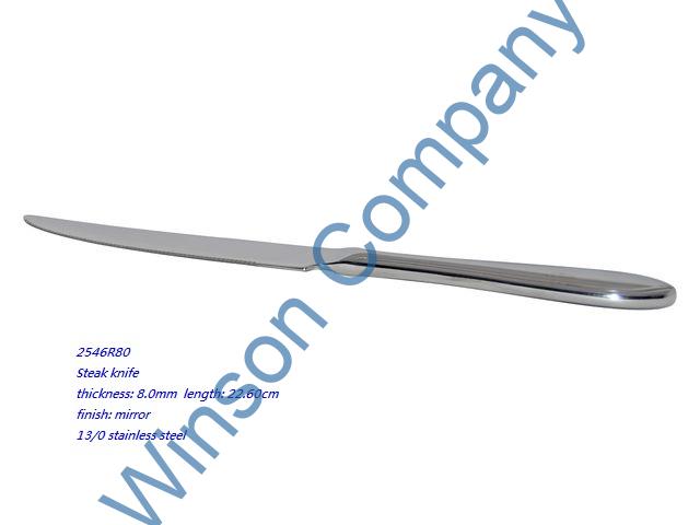 2546R80-Steak knife ← Previous Next → 2546R80 Steak knife thickness: 8.0mm length: 22.60cm finish: mirror 13/0 stainless steel