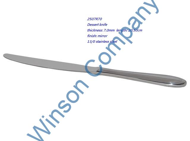 2507R70-Dessert knife ← Previous Next → 2507R70 Dessert knife thickness: 7.0mm length: 20.50cm finish: mirror 13/0 stainless steel