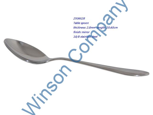 2506S28-Table spoon ← Previous Next → 2506S28 Table spoon thickness: 2.8mm length: 20.60cm finish: mirror 18/8 stainless steel