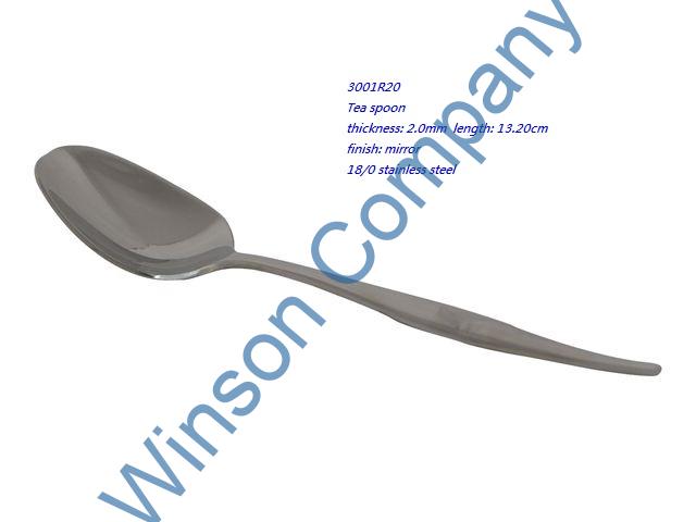 3001R20-Tea spoon ← Previous Next → 3001R20 Tea spoon thickness: 2.0mm length: 13.20cm finish: mirror 18/0 stainless steel