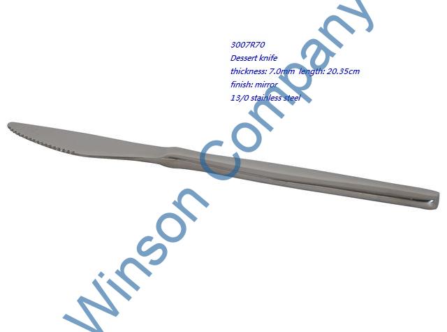 3007R70-Dessert knife ← Previous 3007R70 Dessert knife thickness: 7.0mm length: 20.35cm finish: mirror 13/0 stainless steel