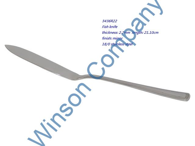 3436R22-Fish knife ← Previous Next → 3436R22 Fish knife thickness: 2.2mm length: 21.10cm finish: mirror 18/0 stainless steel