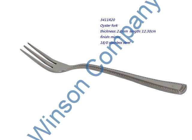 3411R20-Oyster fork ← Previous 3411R20 Oyster fork thickness: 2.0mm length: 12.30cm finish: mirror 18/0 stainless steel