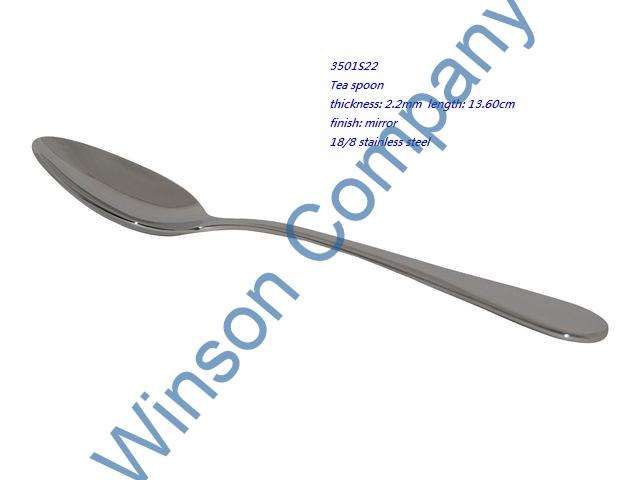3501S22-Tea spoon ← Previous Next → 3501S22 Tea spoon thickness: 2.2mm length: 13.60cm finish: mirror 18/8 stainless steel