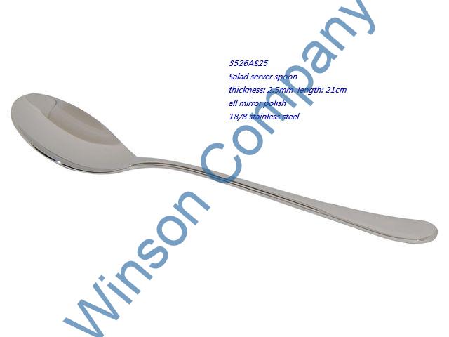 3526AS25-Salad server spoon ← Previous Next → 3526AS25 Salad server spoon thickness: 2.5mm length: 21cm 18/8 stainless steel