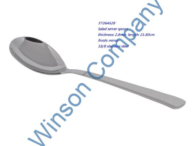 3726AS28-Salad server spoon ← Previous Next → 3726AS28 Salad server spoon thickness: 2.8mm length: 21.80cm finish: mirror 18/8 stainless steel
