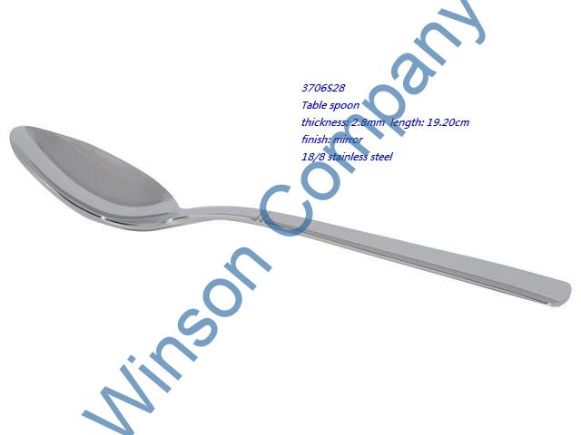 3706S28-Table spoon ← Previous Next → 3706S28 Table spoon thickness: 2.8mm length: 19.20cm finish: mirror 18/8 stainless steel