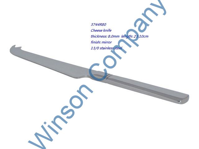 3744R80-Cheese knife ← Previous Next → 3744R80 Cheese knife thickness: 8.0mm length: 23.10cm finish: mirror 13/0 stainless steel
