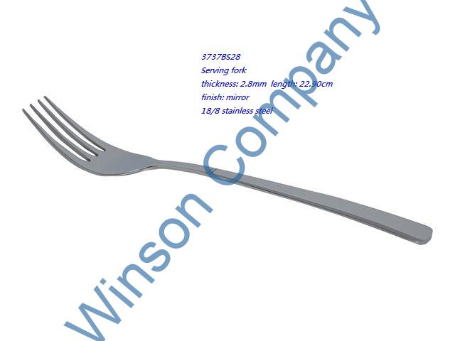 3737BS28-Serving spoon ← Previous Next → 3737BS28 Serving fork thickness: 2.8mm length: 22.90cm finish: mirror 18/8 stainless steel