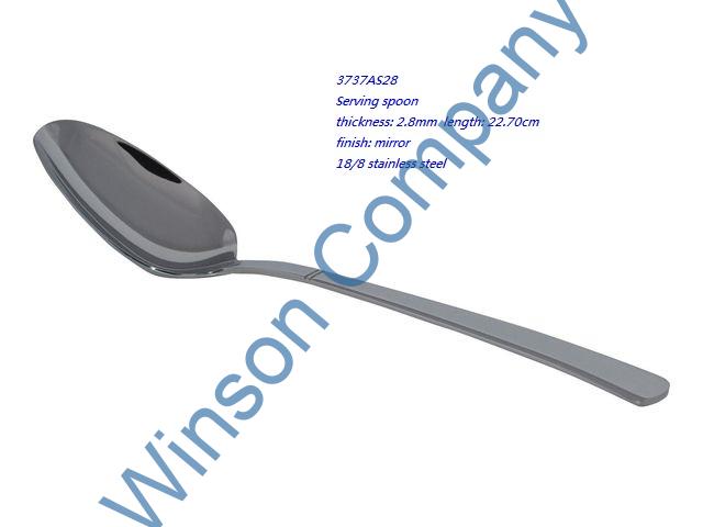 3737AS28-Serving spoon ← Previous Next → 3737AS28 Serving spoon thickness: 2.8mm length: 22.70cm finish: mirror 18/8 stainless steel