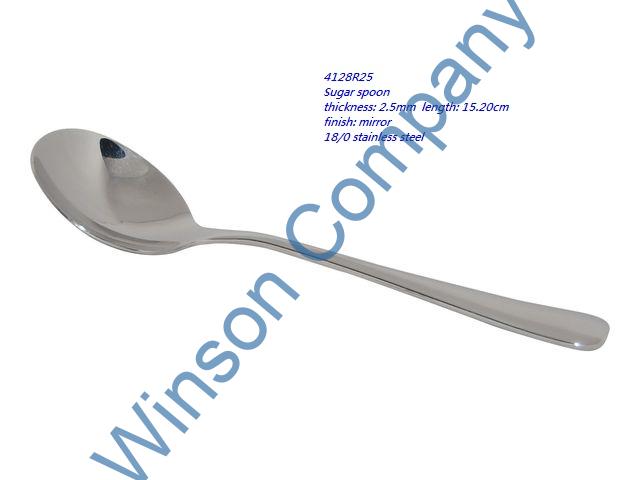 4128R25-Sugar spoon ← Previous Next → 4128R25 Sugar spoon thickness: 2.5mm length: 15.20cm finish: mirror 18/0 stainless steel