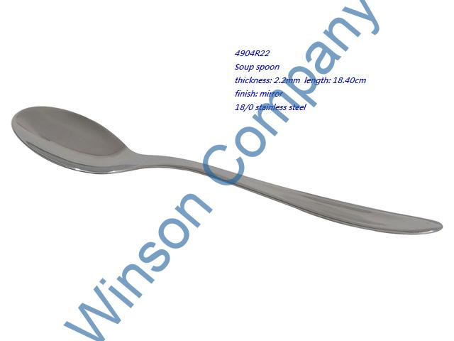 4904R22-Soup spoon ← Previous Next → 4904R22 Soup spoon thickness: 2.2mm length: 18.40cm finish: mirror 18/0 stainless steel