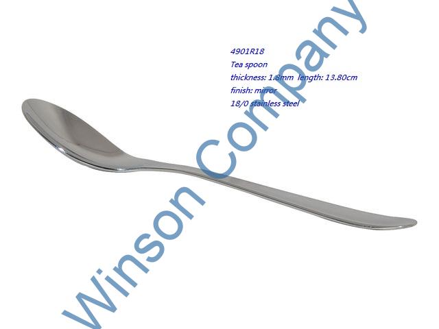 4901R18-Tea spoon ← Previous Next → 4901R18 Tea spoon thickness: 1.8mm length: 13.80cm finish: mirror 18/0 stainless steel