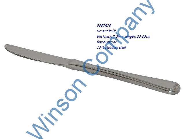 5007R70-Dessert knife ← Previous Next → 5007R70 Dessert knife thickness: 7.0mm length: 20.30cm finish: mirror 13/0 stainless steel