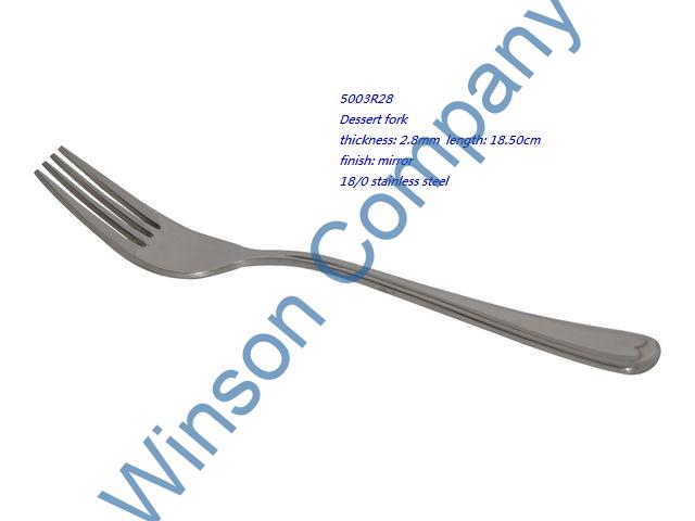 5003R28-Dessert fork ← Previous Next → 5003R28 Dessert fork thickness: 2.8mm length: 18.50cm finish: mirror 18/0 stainless steel