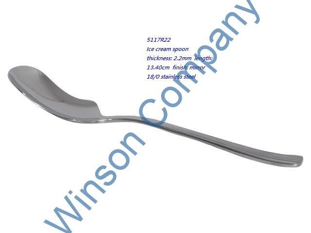 5117R22-Ice cream spoon ← Previous Next → 5117R22 Ice cream spoon thickness: 2.2mm length: 13.40cm finish: mirror 18/0 stainless steel