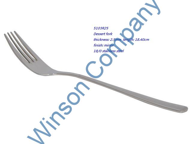 5103R25-Dessert fork ← Previous Next → 5103R25 Dessert fork thickness: 2.5mm length: 18.40cm finish: mirror 18/0 stainless steel