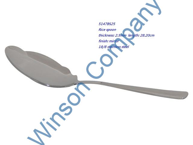 5147BS25-Rice spoon ← Previous Next → 5147BS25 Rice spoon thickness: 2.5mm length: 28.20cm finish: mirror 18/8 stainless steel