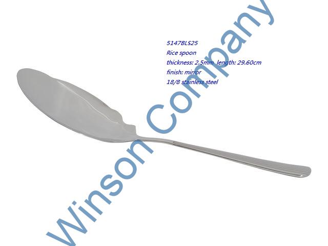 5147BLS25-Rice spoon ← Previous Next → 5147BLS25 Rice spoon thickness: 2.5mm length: 29.60cm finish: mirror 18/8 stainless steel