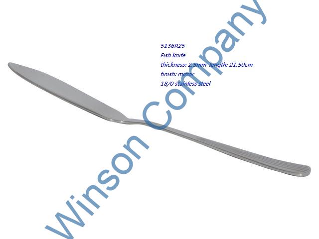 5136R25-Fish knife ← Previous Next → 5136R25 Fish knife thickness: 2.5mm length: 21.50cm finish: mirror 18/0 stainless steel