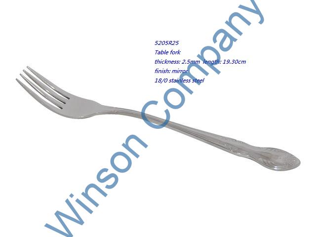 5205R25-Table fork ← Previous Next → 5205R25 Table fork thickness: 2.5mm length: 19.30cm finish: mirror 18/0 stainless steel