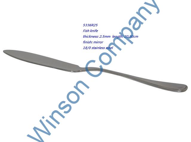 5336R25-Fish knife ← Previous Next → 5336R25 Fish knife thickness: 2.5mm length: 20.90cm finish: mirror 18/0 stainless steel
