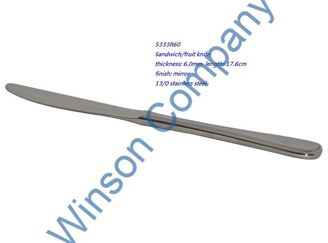 5333R60-Sandwich,fruit knife ← Previous Next → 5333R60 Sandwich/fruit knife thickness: 6.0mm length: 17.6cm 13/0 stainless steel